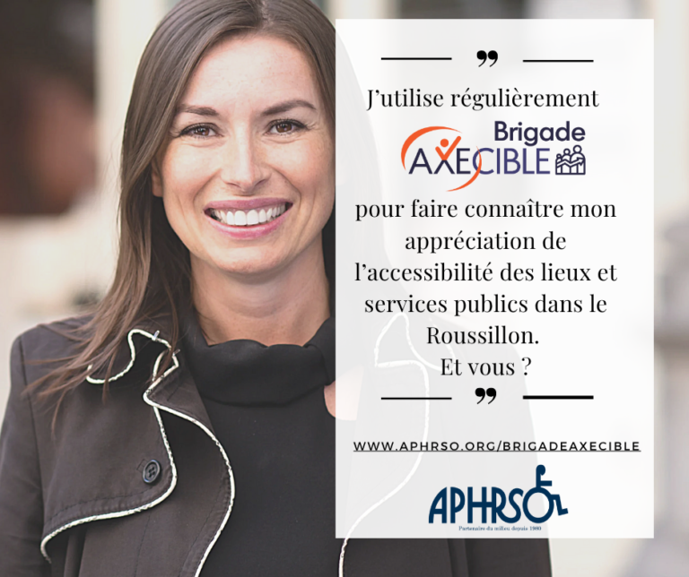 Initiée par le Regroupement des organismes de promotion de personnes handicapées de Laval, la Brigade AXECIBLE est maintenant disponible dans la région, grâce à l’initiative du Groupement des associations de personnes handicapées de la Rive-Sud de Montréal (GAPHRSM).